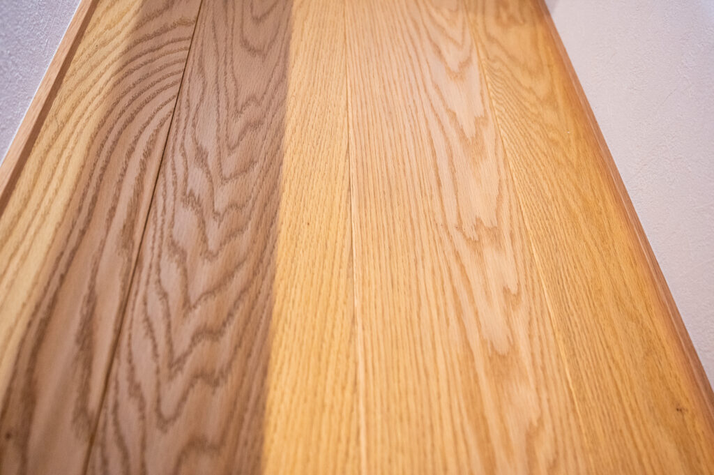 その下の床材には、住友林業クレストの挽板「なぐり」仕上げを選びました。